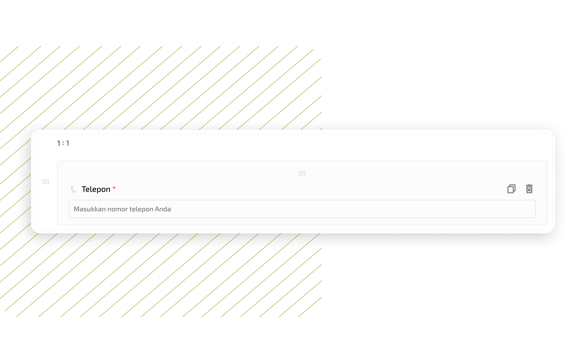 Pasang kolom "Nomor Telepon".Atur kolom: buat menjadi wajib diisi, aktifkan penggunaan mask input untuk memudahkan pengisian nomor.