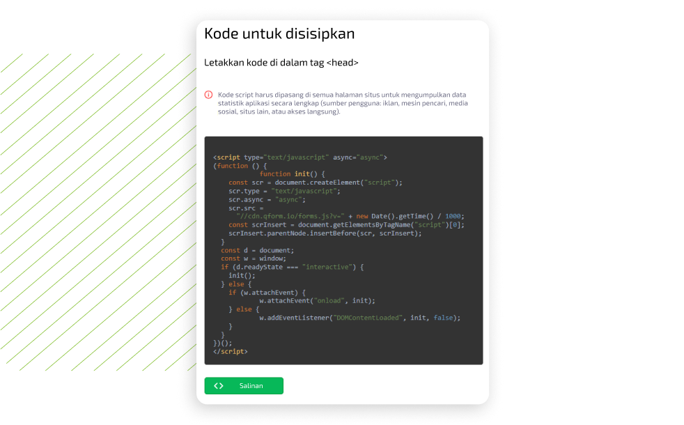 Buka tab Sematkan Kode. Salin teks dari jendela DIV untuk menginstal formulir dan skrip untuk membukanya, tempelkan di situs web