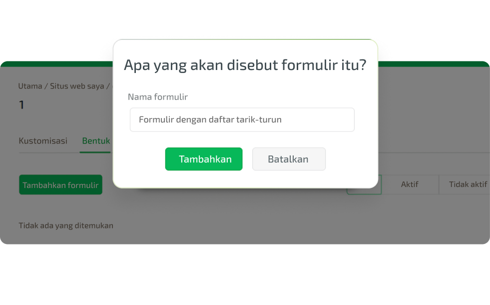 Daftar dengan QForm dan tambahkan situs web tempat formulir akan dibuat displayed