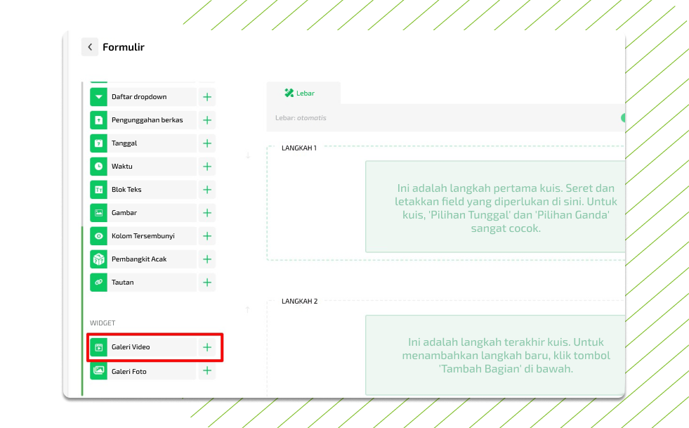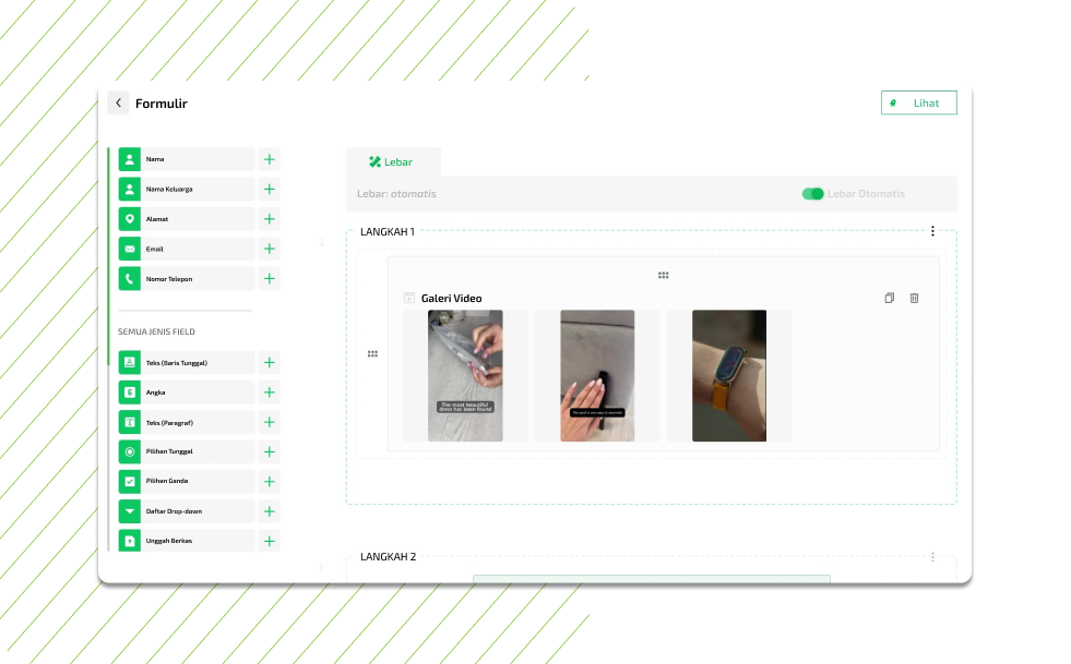 Pembuat iklan kami memungkinkan Anda menambahkan video ke formulir untuk meningkatkan keterlibatan pengguna. Anda dapat menunjukkan secara visual cara kerja produk Anda, manfaat apa yang dibawanya, atau memperkenalkan tim di balik proyek tersebut.