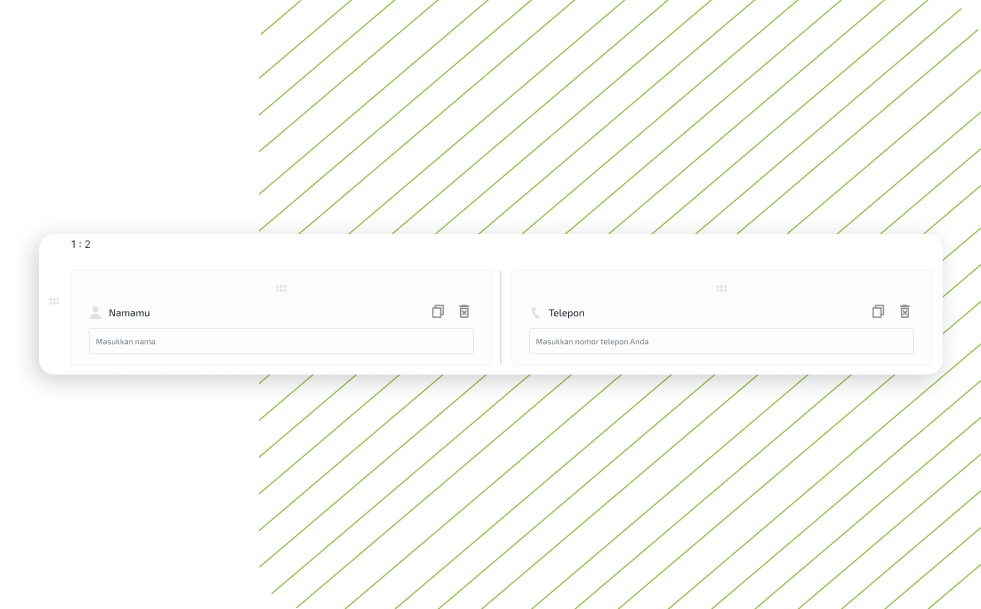 Dalam mode perancang, tempatkan field "Nama" dan "Telepon". Lalu, konfigurasikan field-field tersebut dengan: