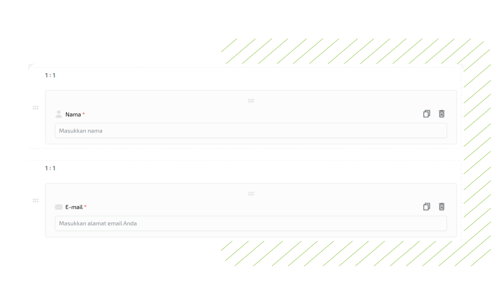 Dalam mode konstruktor, seret dan lepas widget Nama dan email. Buat mereka wajib diisi out