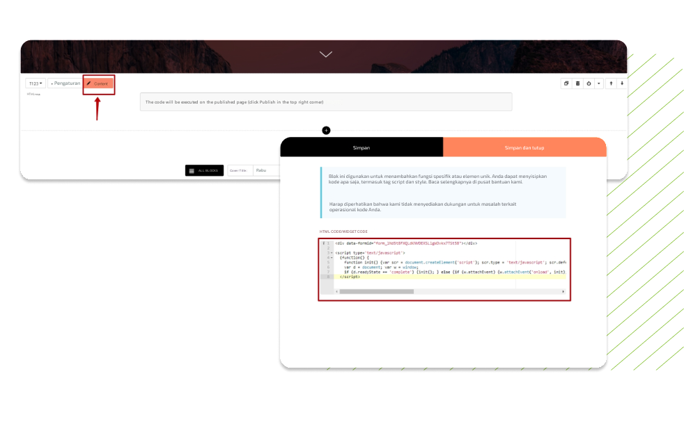 Salin DIV untuk menginstal formulir dan skrip untuk memanggilnya