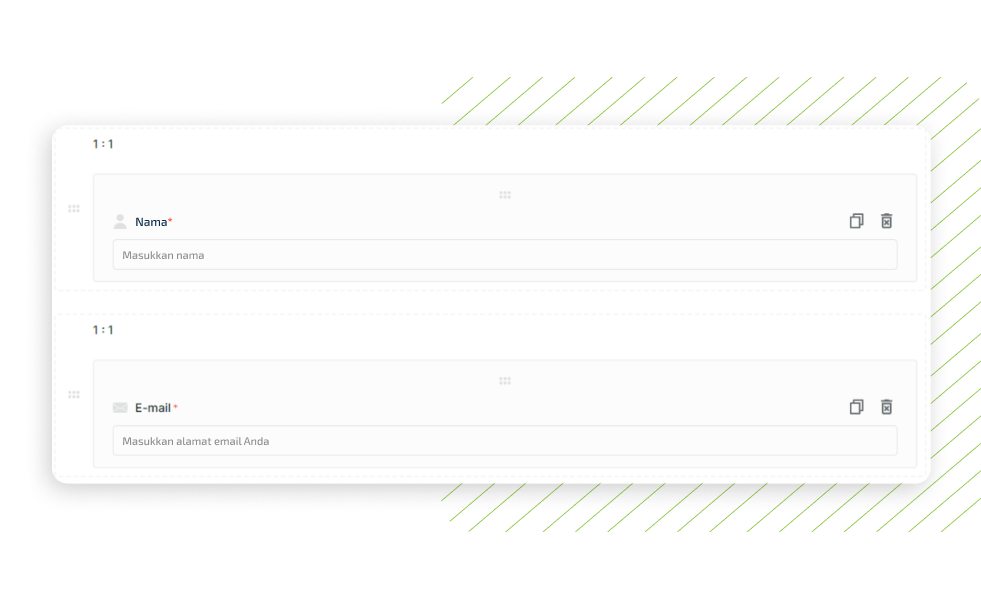 Seret dan lepas bidang «Nama» dan «Email». Buat mereka wajib diisi