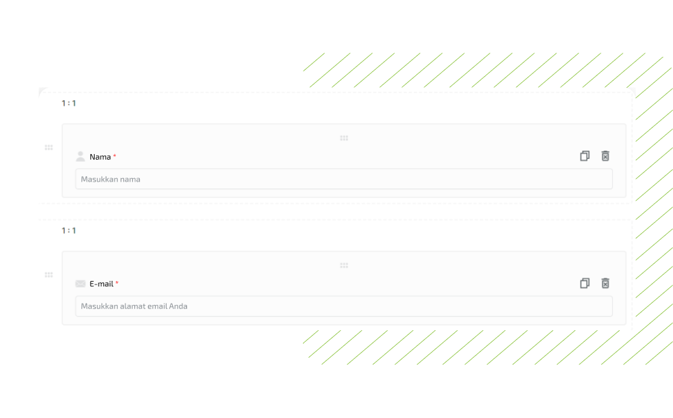 Untuk mengumpulkan kontak, seret dan lepas widget Nama dan email. Buat mereka wajib diisi out