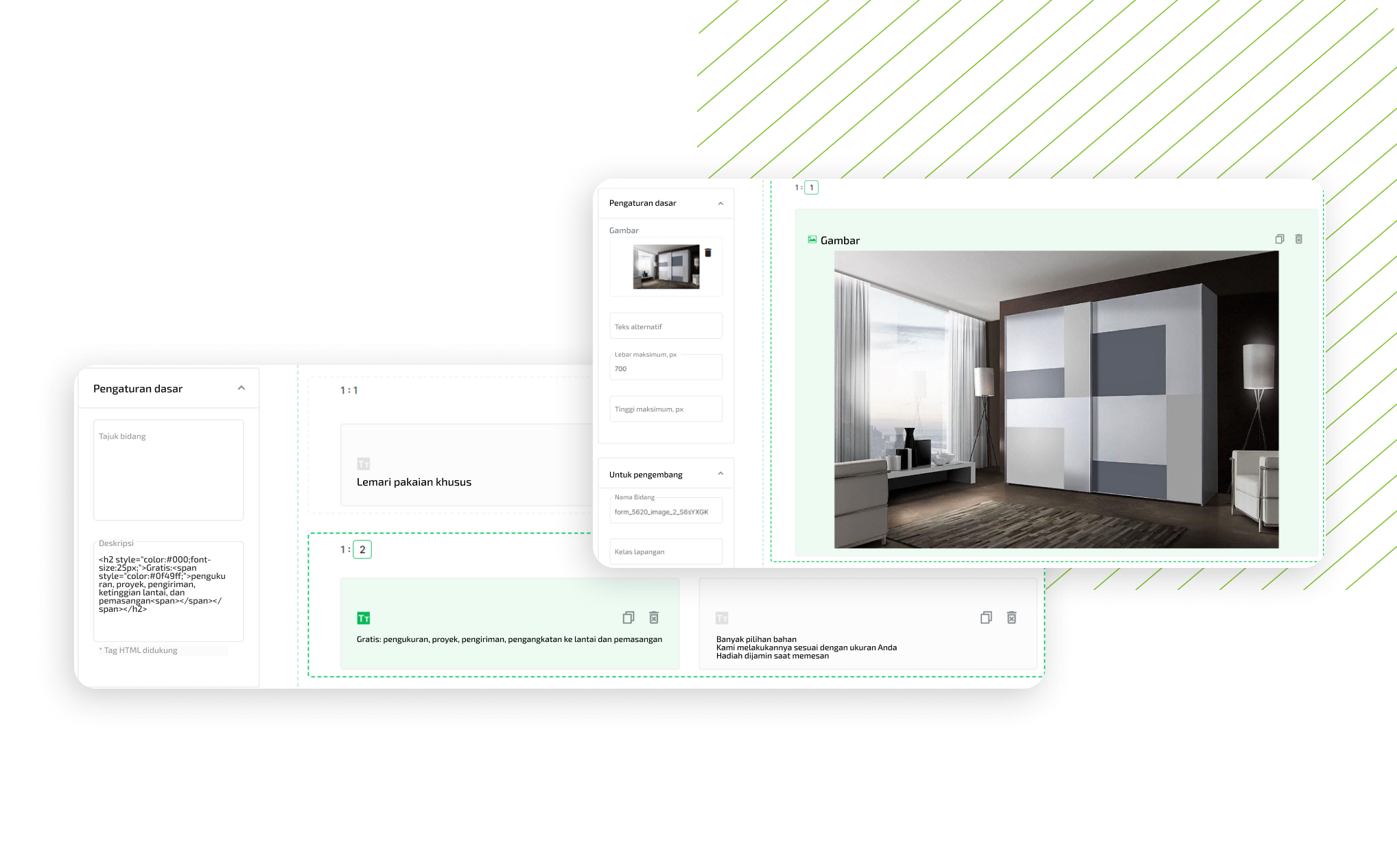 Dalam mode konstruktor, tambahkan dan konfigurasikan jenis bidang yang diperlukan. Buat bagian terpisah untuk setiap langkah