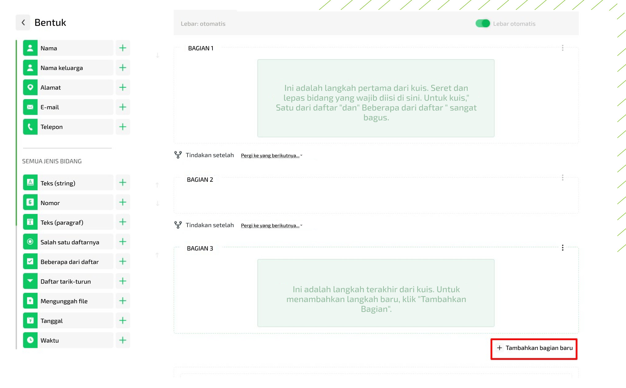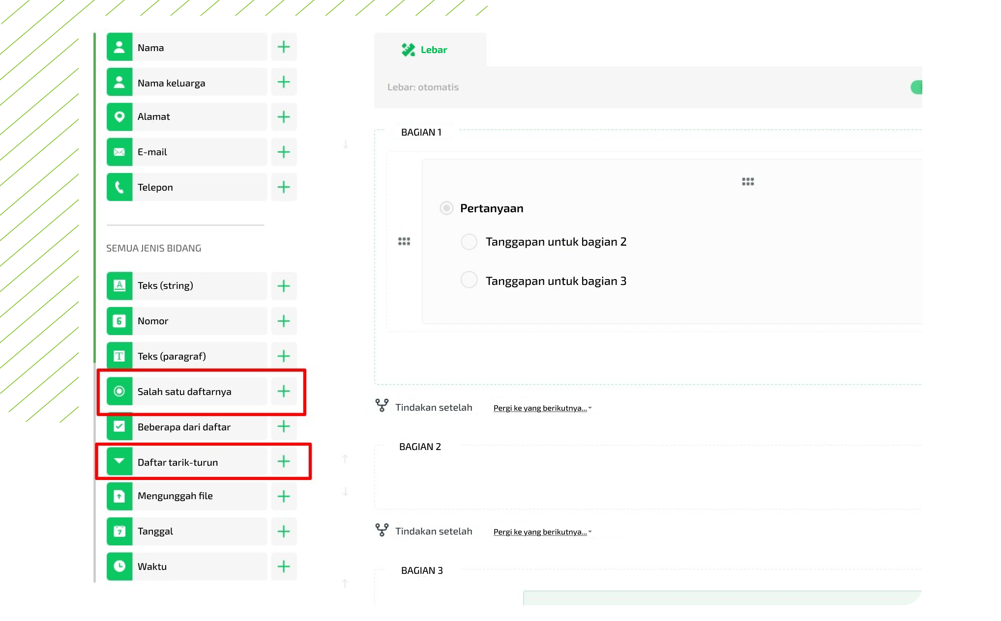 Fungsionalitas fleksibel untuk membuat kuis dinamis