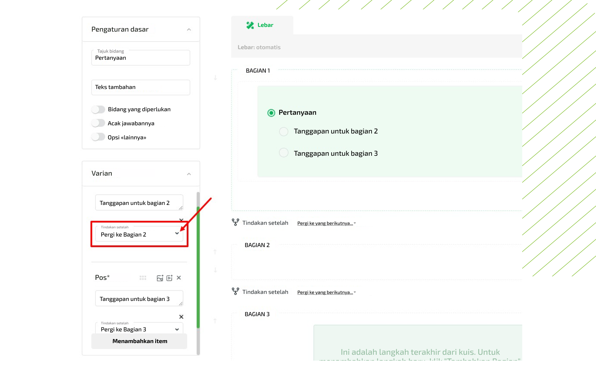 Siapkan logika peralihan antar bagian berdasarkan respons pengguna.