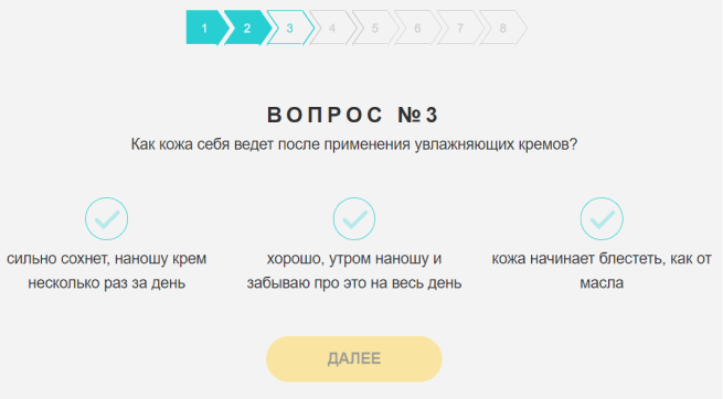 Пример продающего квиза: “Тест на тип кожи”.