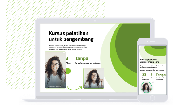 Sesuaikan tampilan widget, tombol tindakan, dan teks. Atur format dan kondisi video agar tampilannya menciptakan pengalaman pengguna yang diinginkan