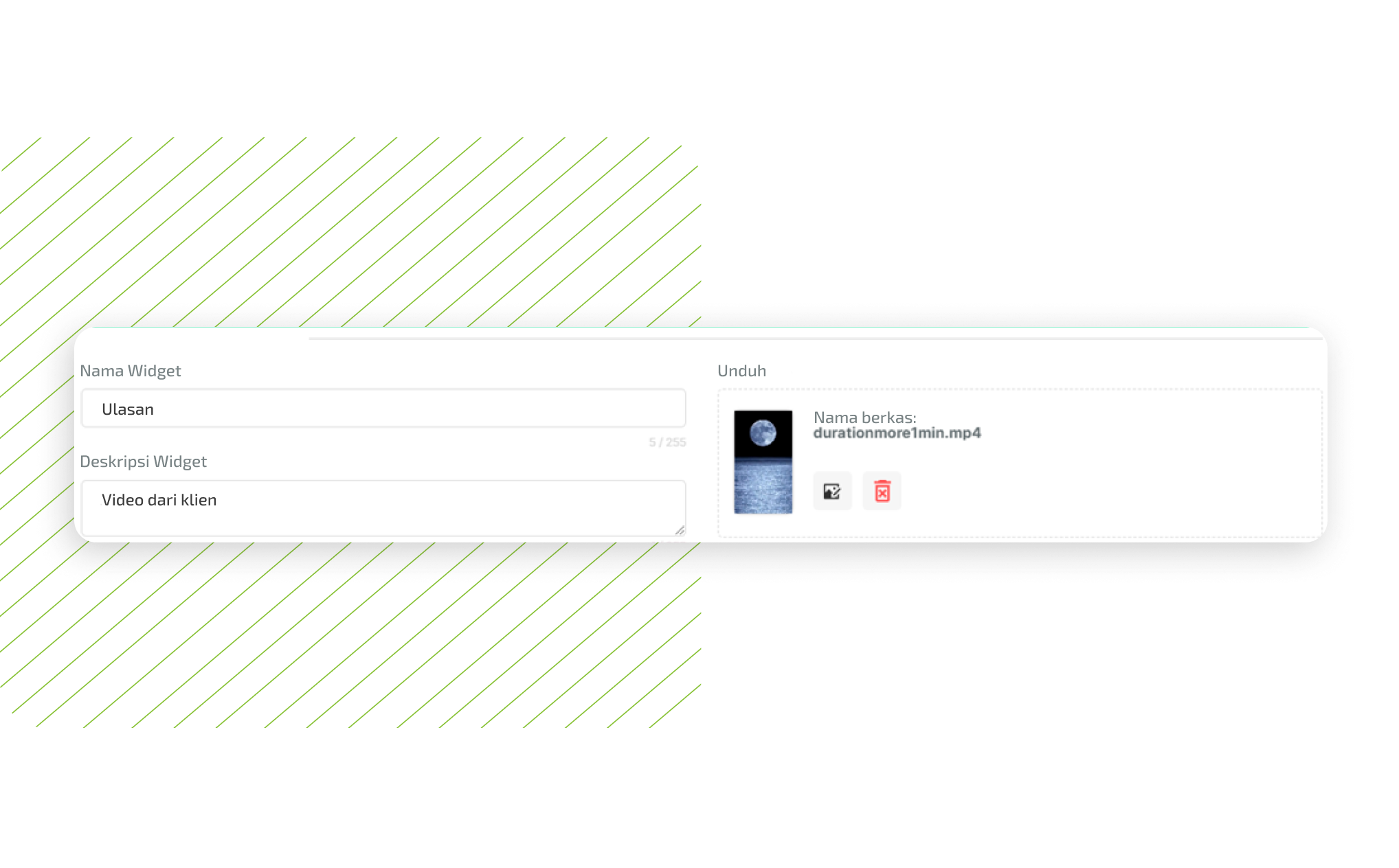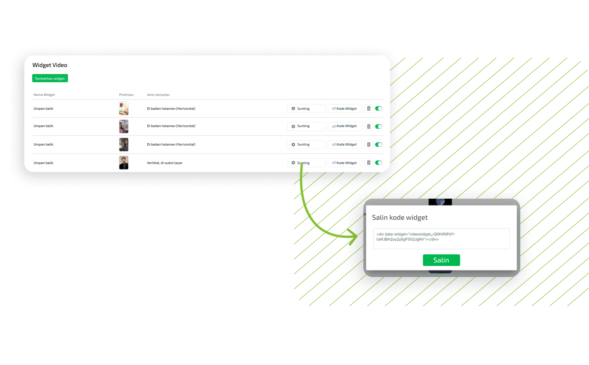 Beri nama widget dan lampirkan file video di bidang unggah. Jika perlu, berikan deskripsi widget.Buka tab "Pengaturan", buka bagian "Sematkan kode", salin skrip dan tempel ke situs di dalam tag