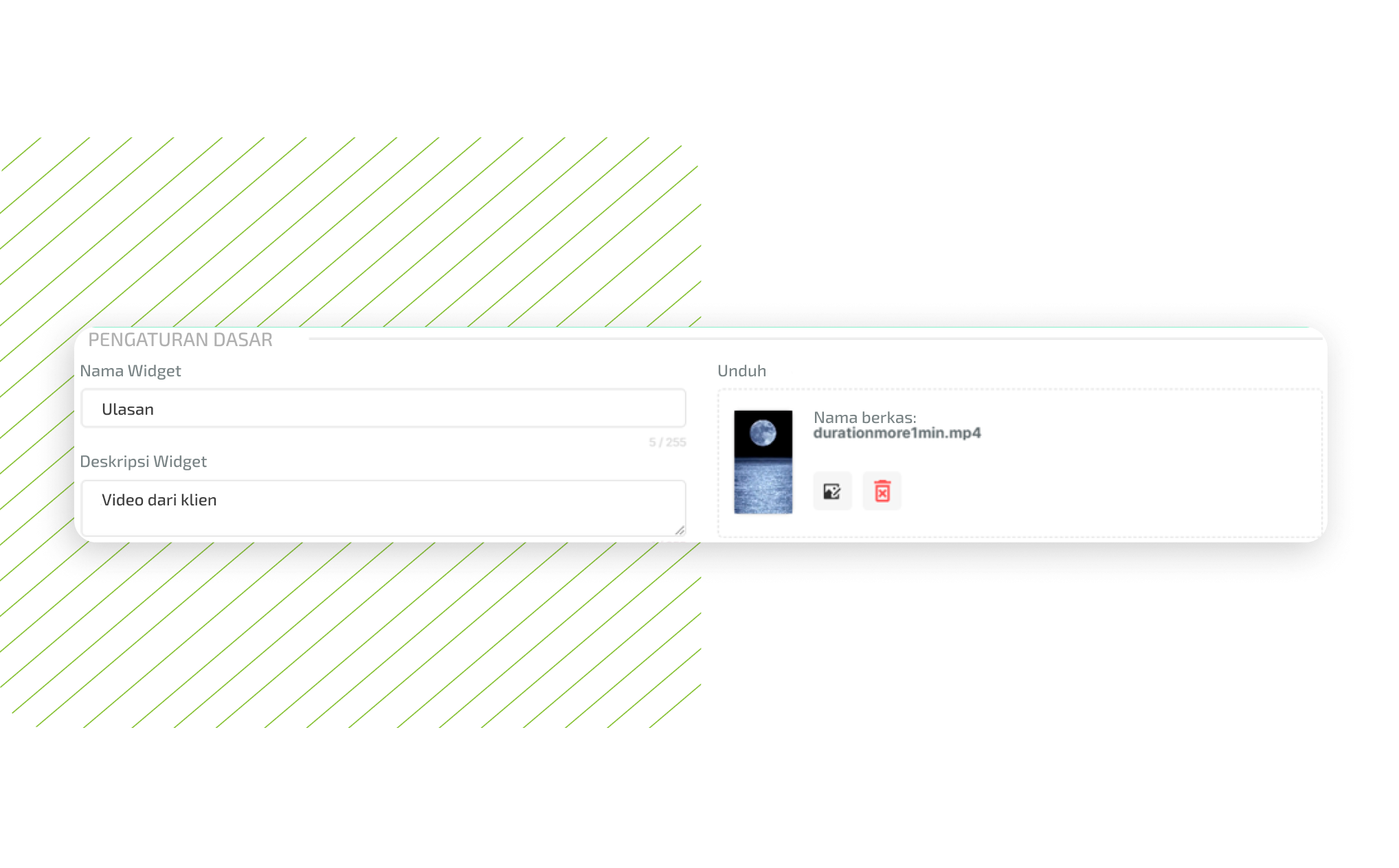 Daftarkan QForm dan tambahkan situs web AndaBeri nama widget dan lampirkan file video di bidang unggah. Jika perlu, berikan deskripsi widget