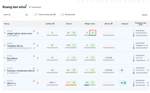Masuk ke akun QForm Anda dan tambahkan ruang baru untuk situs web Anda.