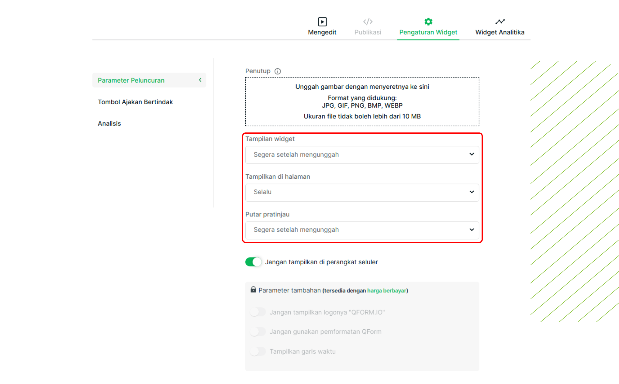 Lacak interaksi pengguna dengan widget melalui alat analisis bawaan. Data yang diperoleh akan membantu mengoptimalkan konten.